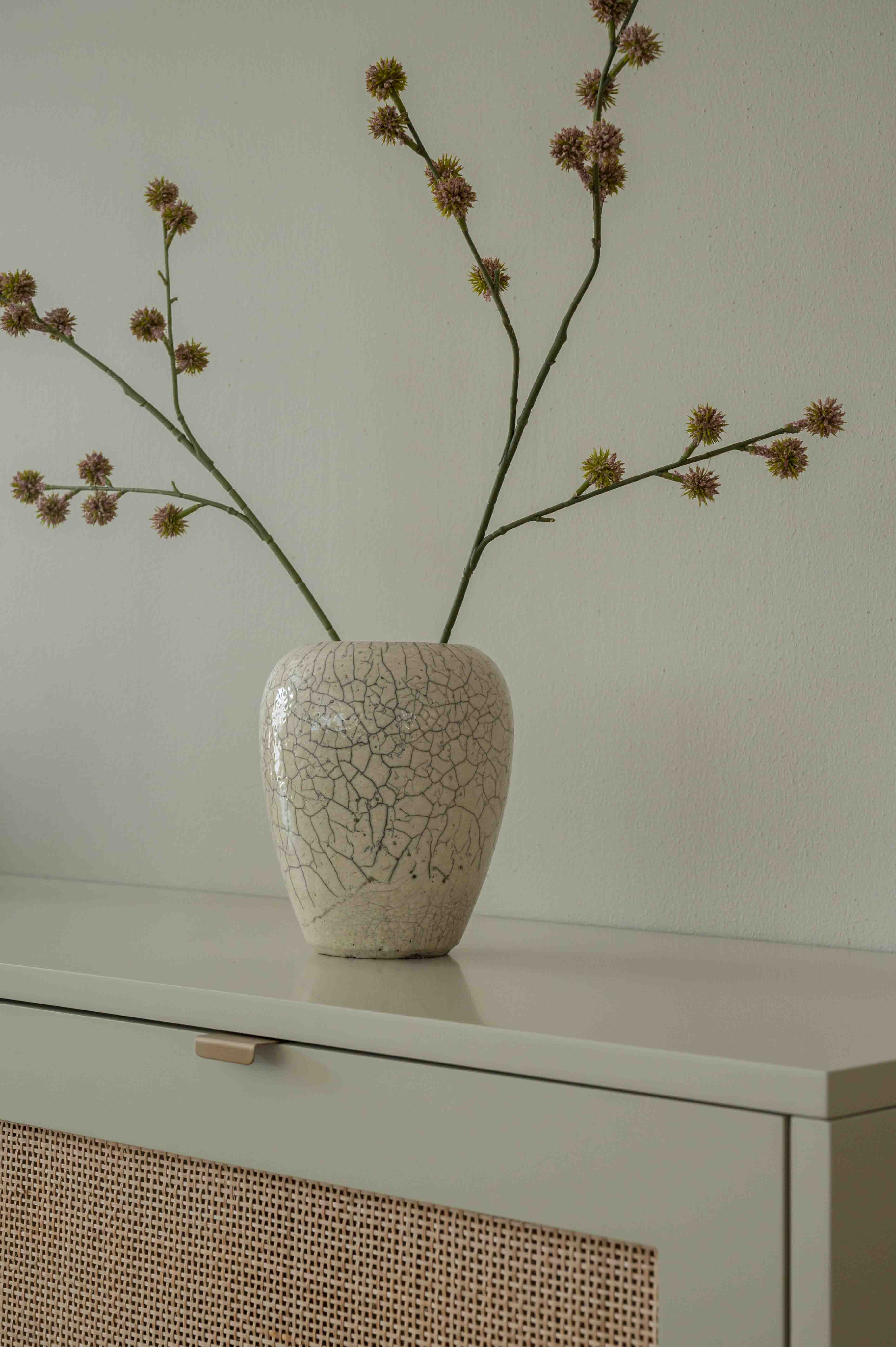 Crackle-glaze ceramic vase, with unique texture and finish that adds depth and interest to any Fronteriors-inspired arrangement.