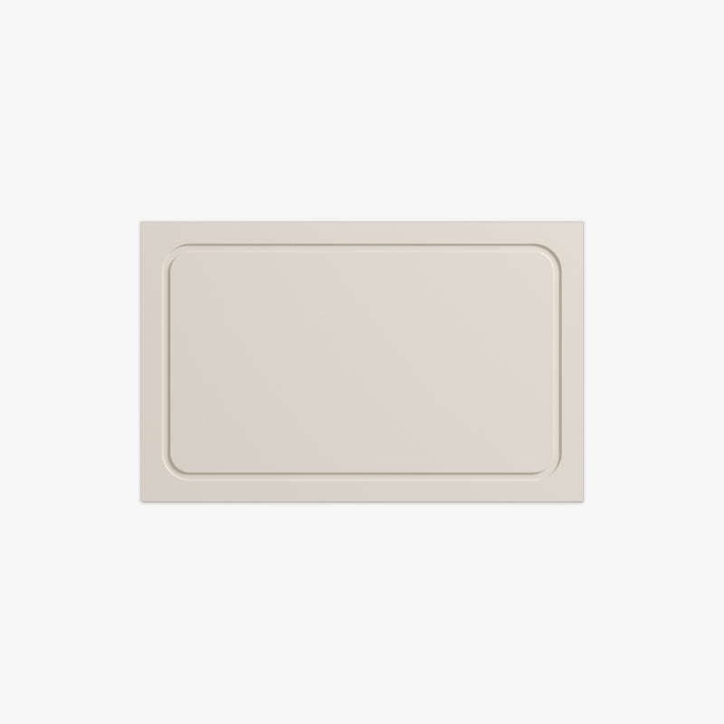 - The design features a delicately crafted rectangular groove with curved corners on the door face for a striking aesthetic that plays with lines and sculptural curves