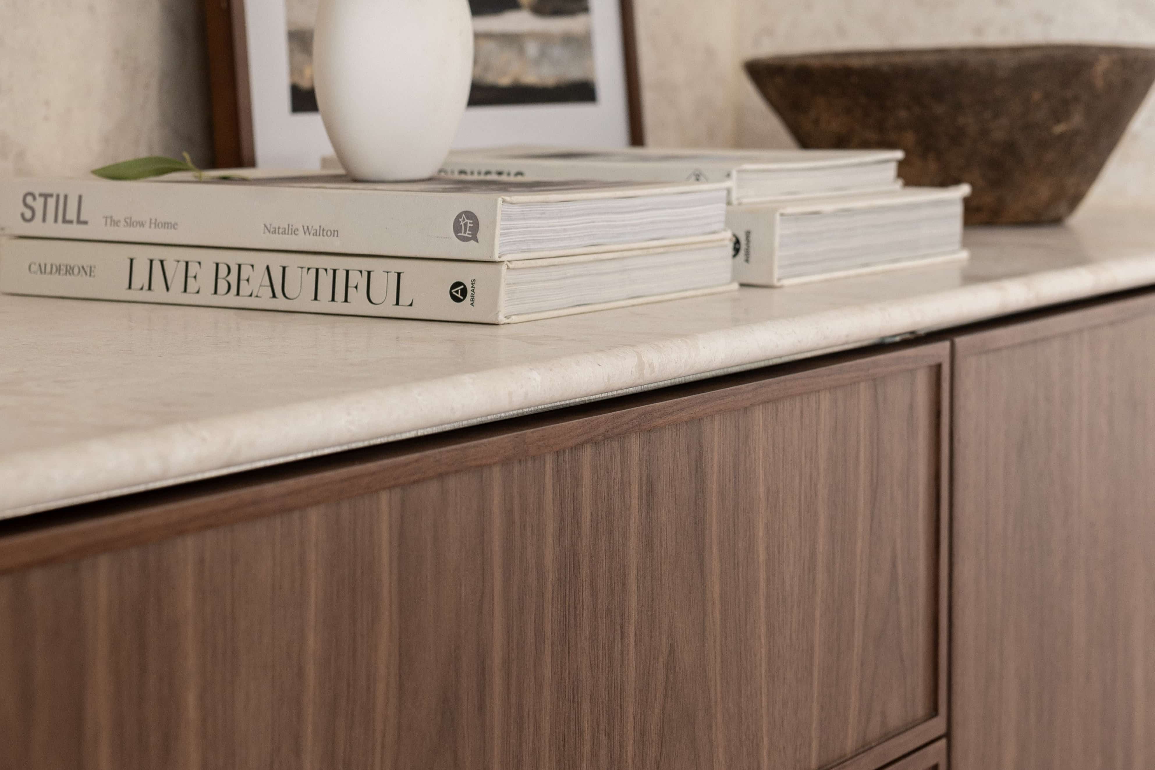 Sourced from walnut hardwood, the veneer is applied to MDF by skilled artisans, ensuring a flawless finish that highlights the natural beauty of the wood.Natural veneeroffers the luxurious appearance of solid walnut while enhancing material efficiency and sustainability.